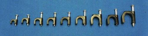 ケーブルクリップ14 材質:PE ピン:硬化鋼(亜鉛メッキ) 色:黒 丸ケーブル用 適用ケーブルサイズ 14mm 入り数:100個 ケーブルを壁等に固定する金具です。 商品説明