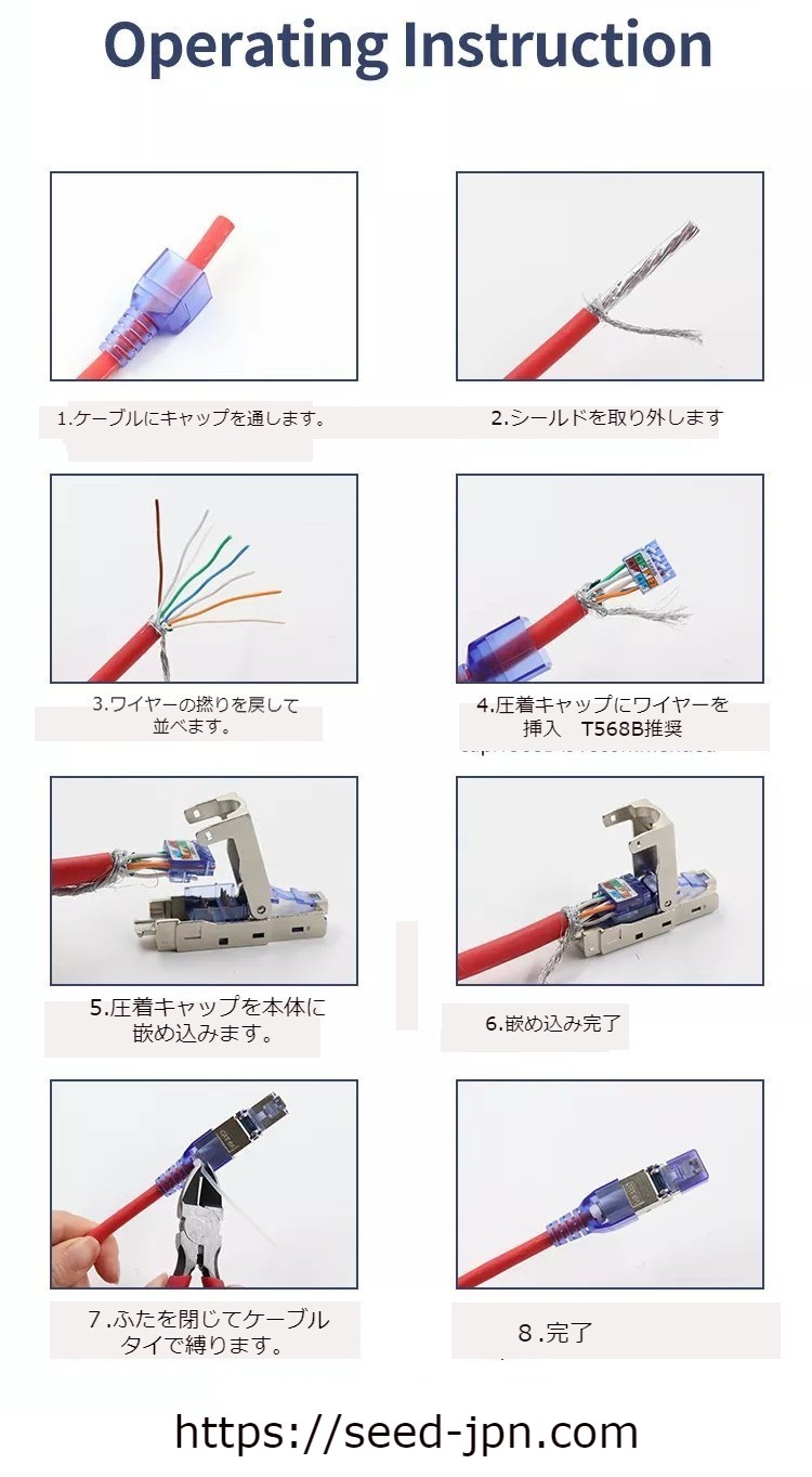 圧着工具不要 CAT.6A STP モジュラージャック 大径ケーブル用 MP6aPB01